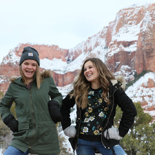 I have been waiting anxiously for the "Closed Sign" to be removed from the road sign on Kolob Canyon on Interstate 15 and finally it was and best of all the FIVE FINGERS are sporting snow- it is unbelievably beautiful. Thankfully, I had two of my Fab Five along for the adventure and they each had a sidekick- super fun. They wandered and giggled and played in the snow while I soaked in the majesty of this wondrous place.